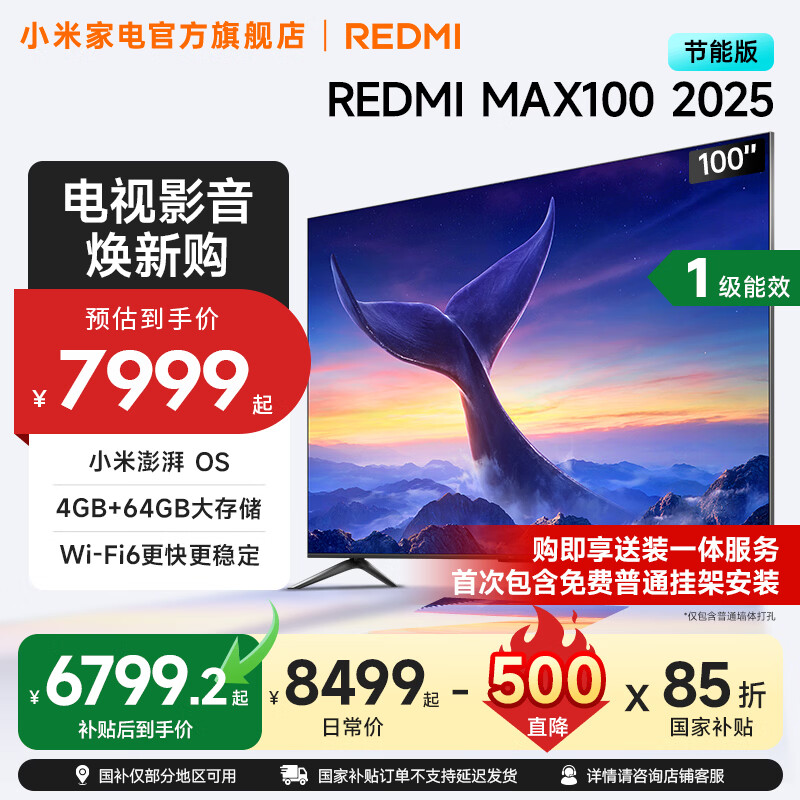 小米(MI)REDMI 电视100英寸巨幕 小米澎湃OS 4+64GB 会议电视 MAX 100 2025 节能版 一级能效 家电补贴 100英寸