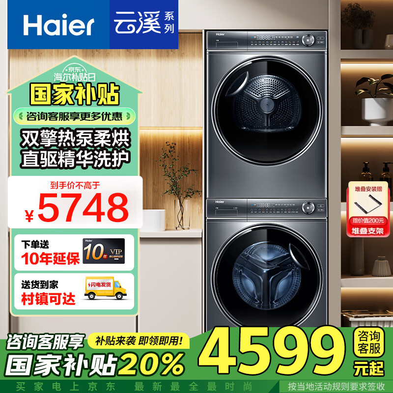 海尔【行业热销】云溪4.0洗烘套装77EW/376+376洗烘套装 补贴20%洗衣机烘干机组合 洗衣机带烘干一体套装 行业热销-双擎热泵376烘干+直驱智投376精华洗