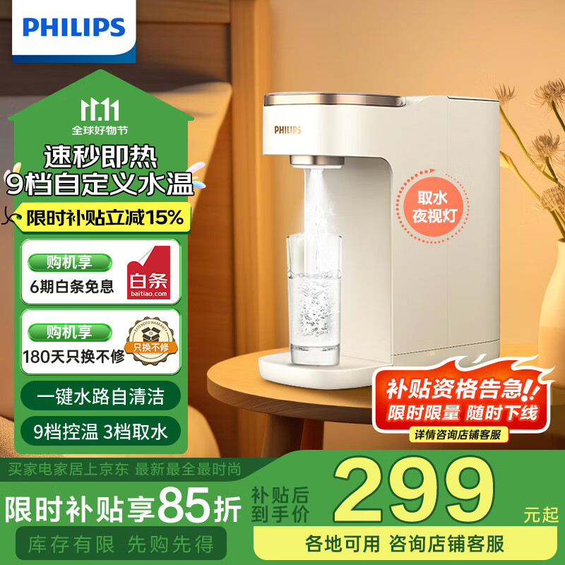 飞利浦(PHILIPS)饮水机家用即热饮水机 免安装小型台式直饮机 桌面智能速热饮水器办公室迷你水吧机饮水机ADD8202 即热型 ADD8210【母婴放心饮】