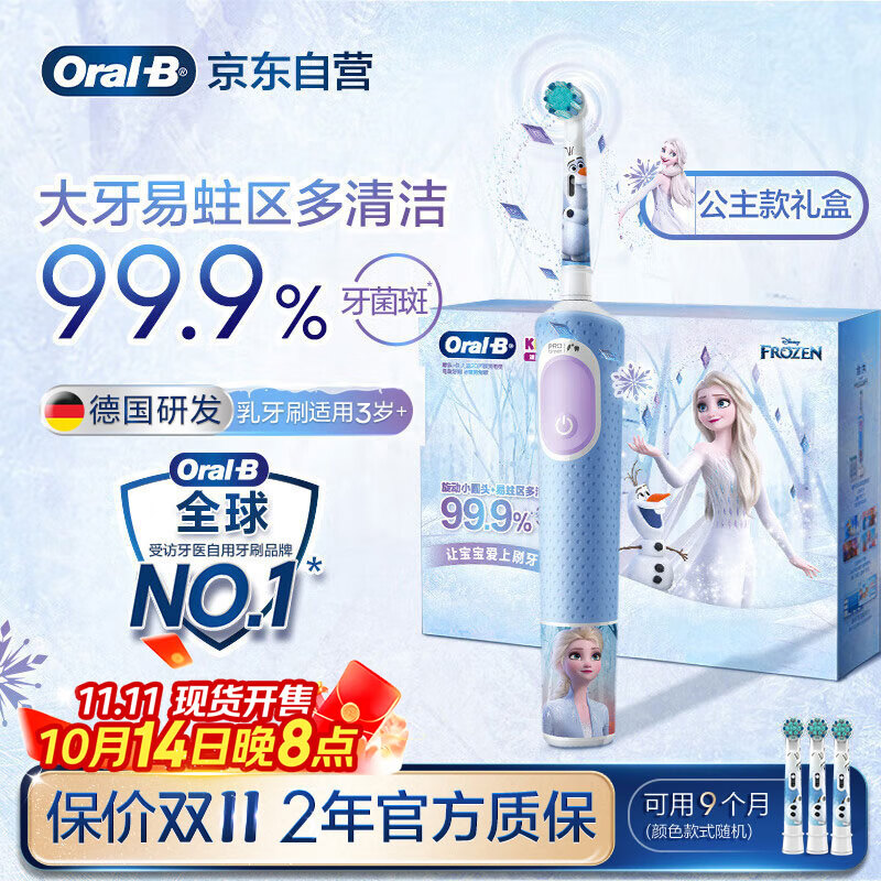 欧乐B电动牙刷儿童分龄刷3-7岁乳牙刷D103K冰雪奇缘礼盒刷头*3(刷头图案随机) 京东自营 日常清洁护齿