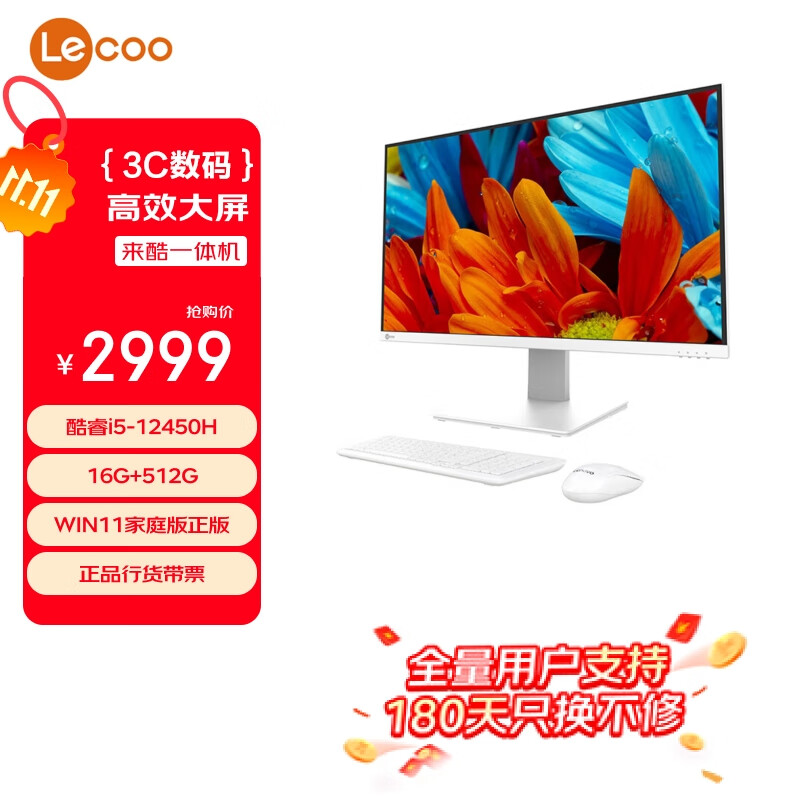 联想来酷 Lecoo一体台式机电脑27英寸(酷睿12代i5-12450H 16G 512G Win11) 白 国家补贴20%