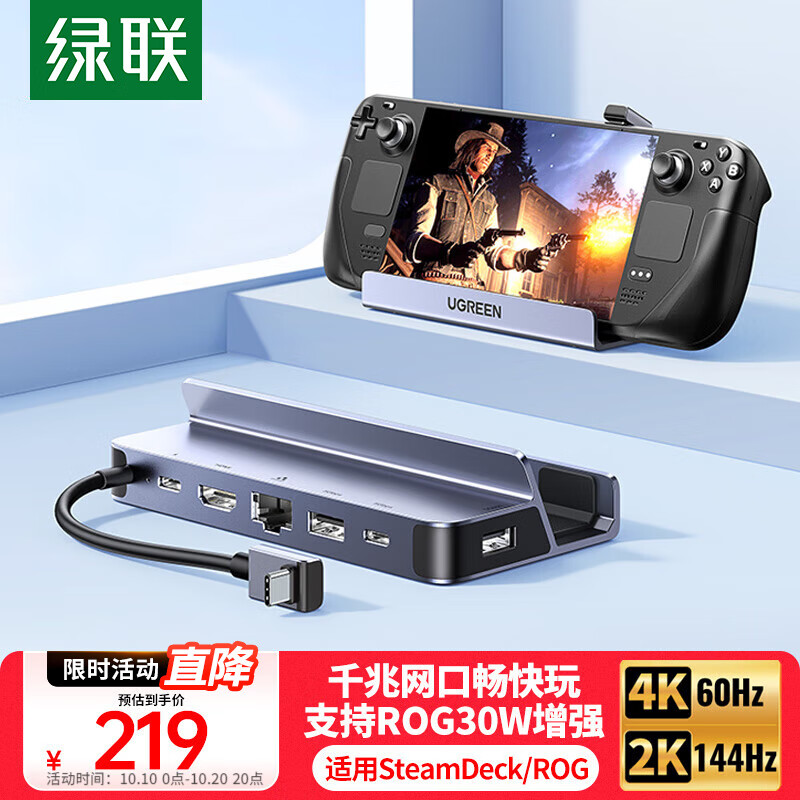 绿联适用Steam Deck/oled/ROG ally扩展坞LEGION Go掌机拓展坞游戏底座HDMI投屏4K60Hz千兆网口扩展坞