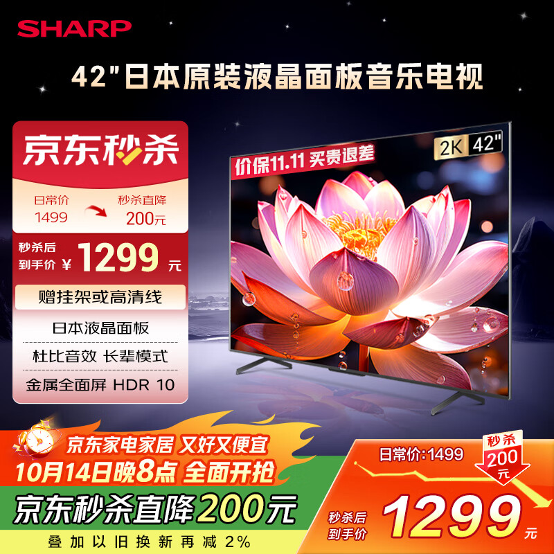 SHARP夏普2T-C42A7DA 42英寸 日本原装液晶面板 1+8G 杜比音效 智能UI系统 平板电视