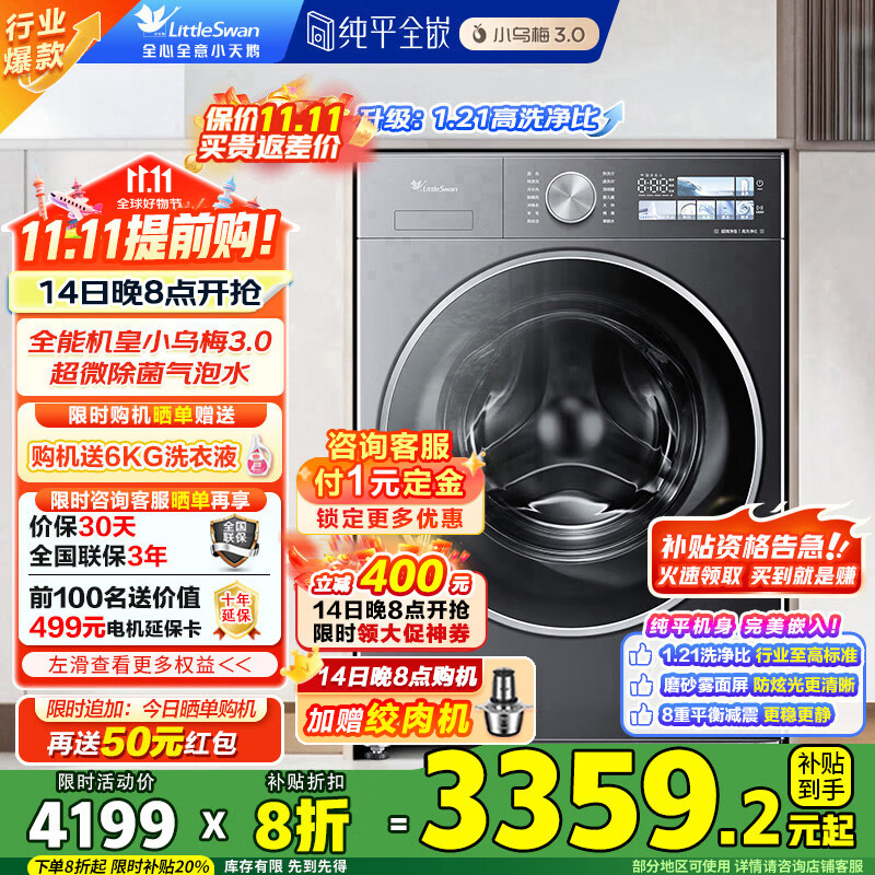 小天鹅(LittleSwan)滚筒洗衣机 洗烘一体12公斤大容量 纯平全嵌超微除菌气泡水 一级能效 【小乌梅3.0高奢版】TD12VE40PRO