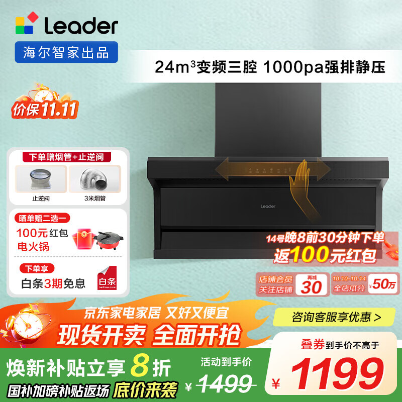 海尔(Haier)顶侧双吸懒人油烟机 24风量大吸力家用抽烟排油烟机 三吸 1000pa强排家电92D小黑翼pro 【单烟机】92dPRO升级款+变频