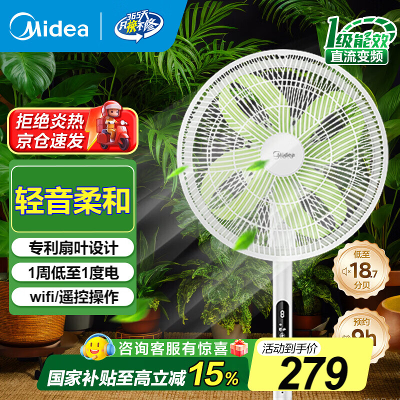 美的(Midea)幸运草安睡电风扇落地扇家用智能变频一级能效风扇客厅宿舍轻音桌面台式立式两用电扇家用国家补贴 25年新款幸运草plus【升级款wifi远程】