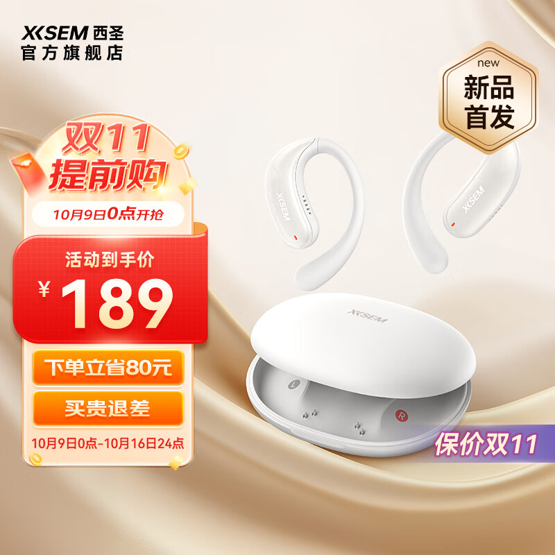 西圣(XISEM)olite无线开放式不入耳运动蓝牙耳机运动跑步专用挂耳式超长续航 Olite2月光白