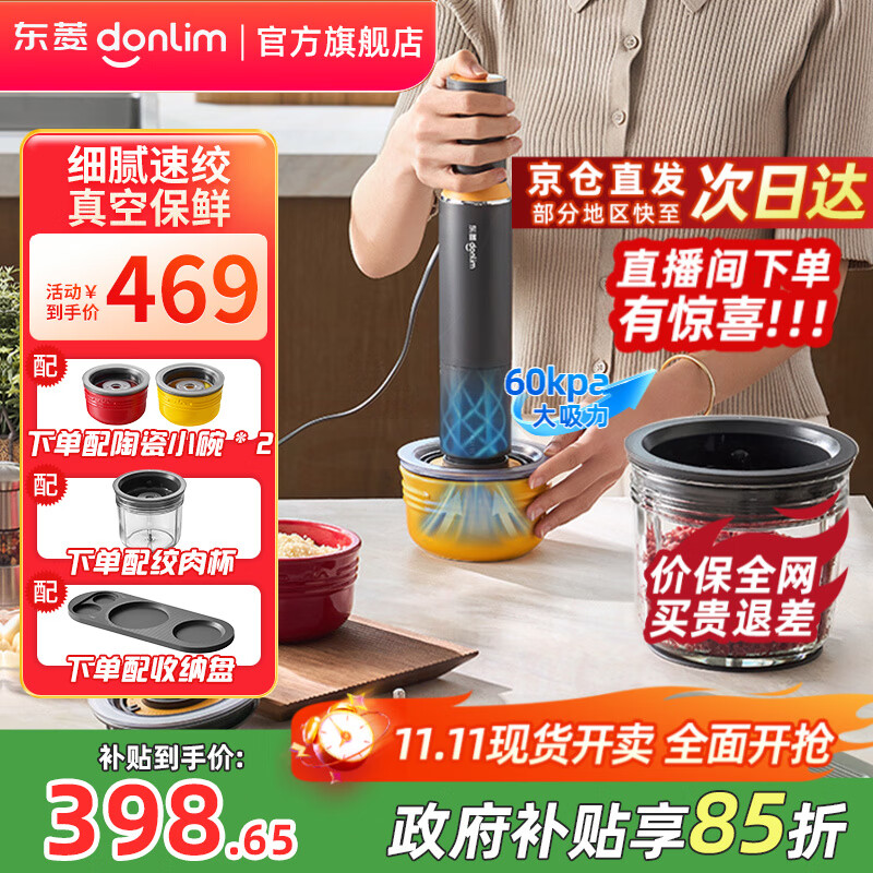东菱(Donlim)绞肉机家用备餐佐料理棒多功能辅食真空收纳保鲜大功率搅拌电动碎肉馅厨房神器DL-5029 【单机】绞肉抽真空二合一 1.6L