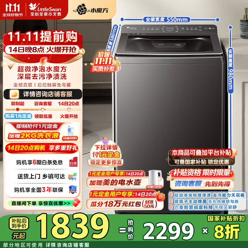 小天鹅(LittleSwan)10KG波轮洗衣机全自动 水魔方小乌梅超微净泡直驱变频 水魔方防缠绕 家电补贴一级能效 TB10VE40D【小乌梅2.0】