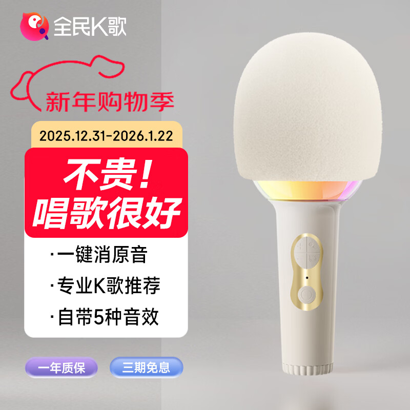 全民K歌麦克风 家庭ktv儿童音箱唱歌卡拉OK电视抖音直播降噪无线蓝牙户外k歌宝手持话筒音响一体 M2茉莉白