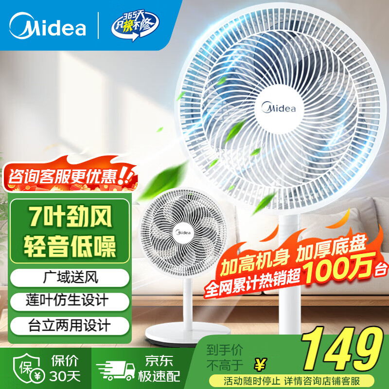美的(Midea) 电风扇 家用风扇7叶落地扇立式轻音节能大风量电扇台扇迷你扇台立两用转页扇空气循环扇安静低音 店长推荐丨7叶劲风 百万单品 家用落地扇