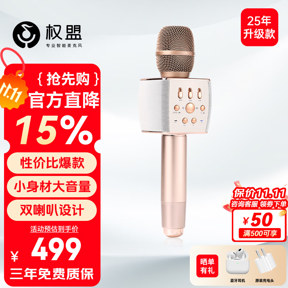 权盟K歌麦克风 话筒音响一体自带声卡 家庭KTV无线户外唱歌家用卡拉ok 【经典款】靓声麦