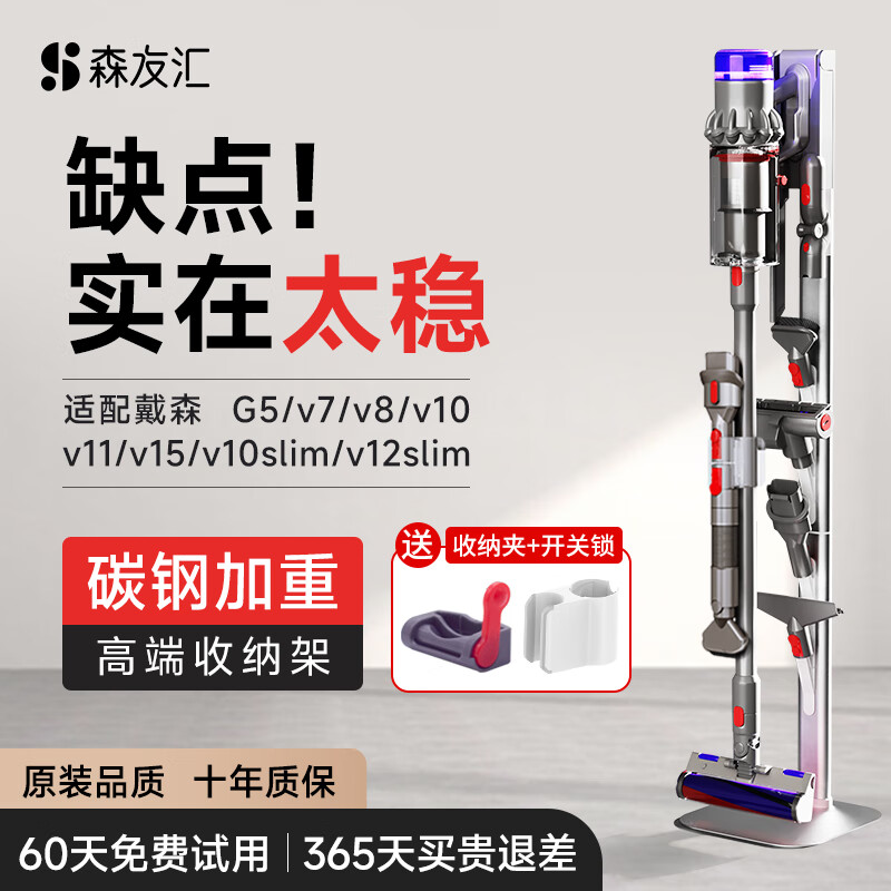 森友汇 适配戴森吸尘器支架收纳架v8v12v10slim/v7v11v15/G5免打孔充电挂架子配件 S3-高端尊享款(可收纳8-14个吸头)