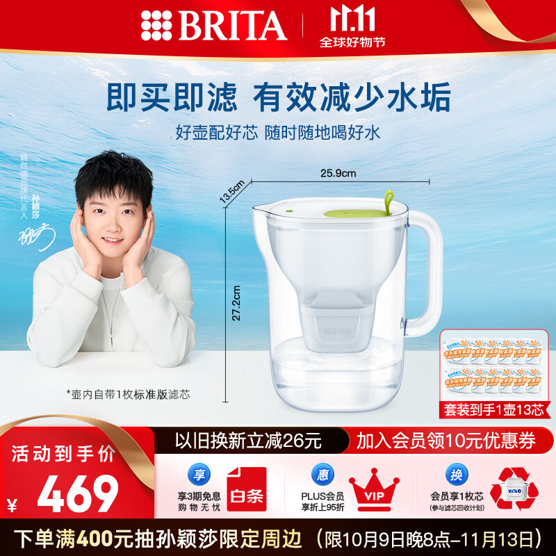 碧然德 【孙颖莎推荐】家用净水壶 滤水壶滤芯 MAXTRA+LE 去水垢专家版滤芯 设计师水壶绿色+专家版滤芯12枚