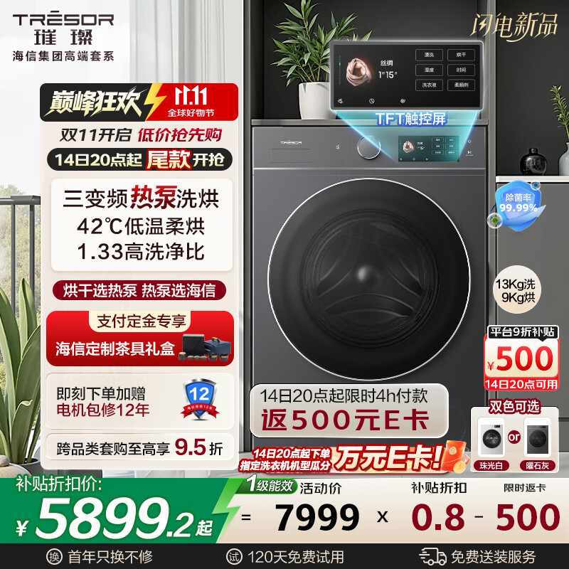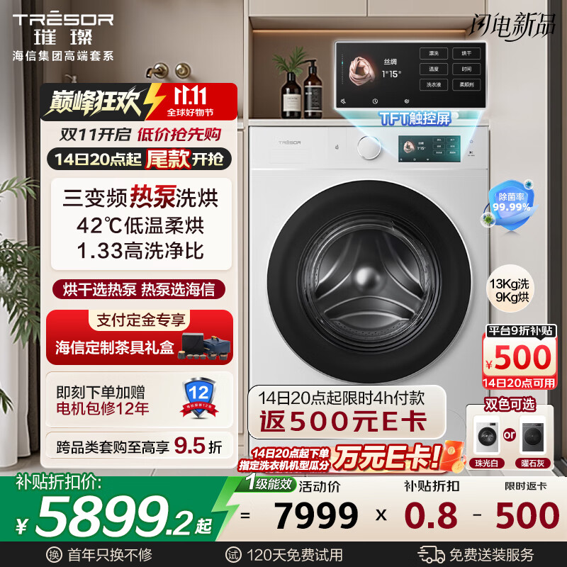 海信(Hisense)璀璨棉花糖热泵洗烘一体机E8Q 全家筒大筒全自动滚筒洗衣机 大容量健康活水洗 WH130E8Q 以旧换新