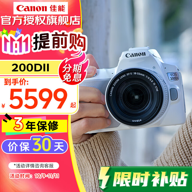 佳能(Canon) EOS200d二代入门单反高清vlog数码照相机视频直播相机 EOS 200D II(18-55mm)白 官方标配(赠3期免息)
