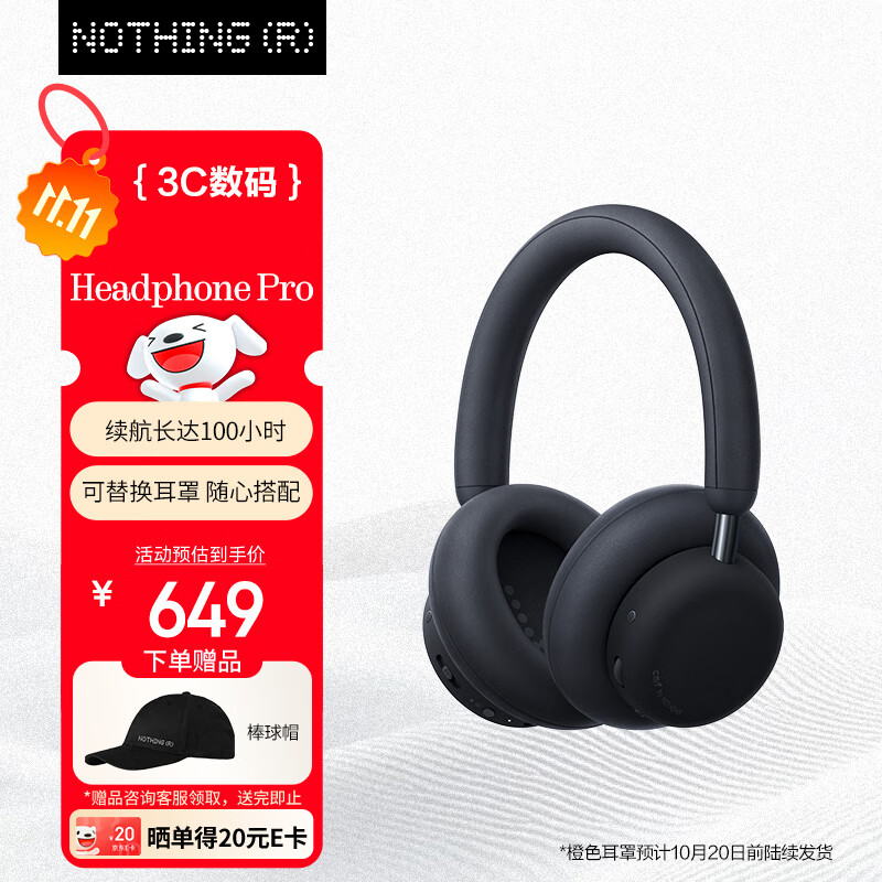 NOTHING CMF Headphone Pro 【新品】头戴无线降噪蓝牙耳机【双11】 HiFi音质 兼容苹果安卓系统 深灰色