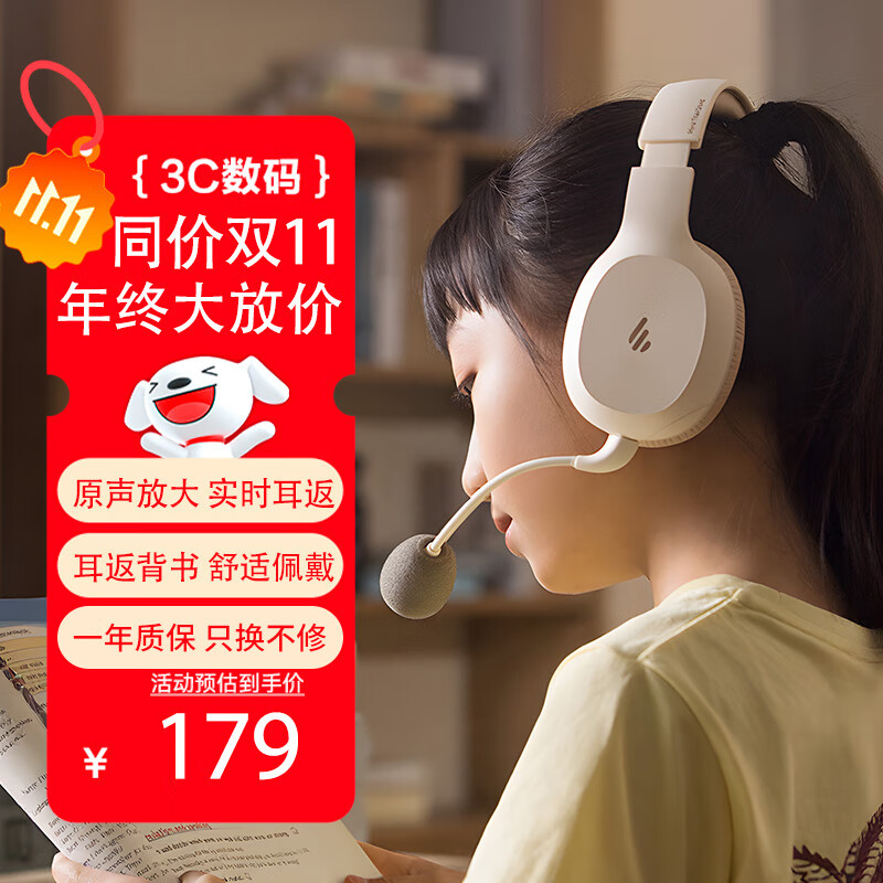 漫步者(EDIFIER)K750W头戴式蓝牙无线耳返耳机儿童背诵跟读沉浸式学习学生网课英语专用降噪耳麦 专业诵读背书耳机 白色 官方标配