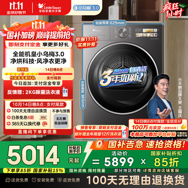 小天鹅(LittleSwan)10KG热泵烘干机 干衣机家用烘衣服 变频 纯平全嵌 大风量 蒸汽除皱【小乌梅3.0】TH10VE40国家补贴