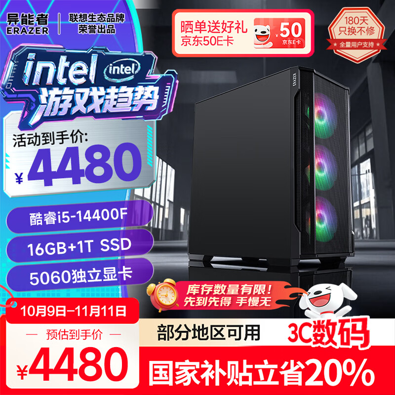 异能者 联想生态 i5-14400F 16G 1T RTX5060 电竞游戏主机设计剪辑制图台式机 魔术师系列 国家补贴20%