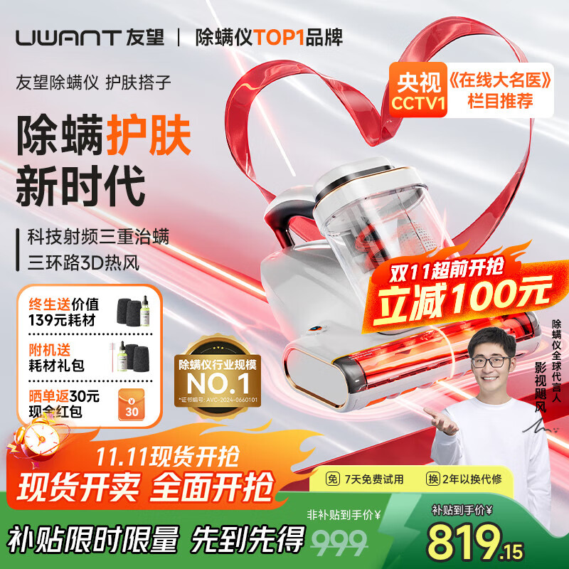 uwant友望红外除螨仪CM2402【CCTV1推荐】护肤搭子 家用紫外线杀菌家用床上除螨机除过敏去螨虫吸尘