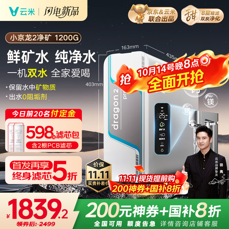 云米(VIOMI)净水器家用小京龙2净矿净水器双出水直饮1200G矿物质RO反渗透厨下式0阻垢剂净水机净饮机 国家补贴