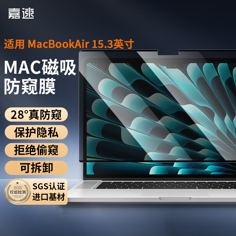 嘉速苹果MacBookAir 15.3英寸磁吸防窥膜M4/M3/M2 Pro15 2025/24/23款屏幕防窥片可拆卸隐私保护膜片