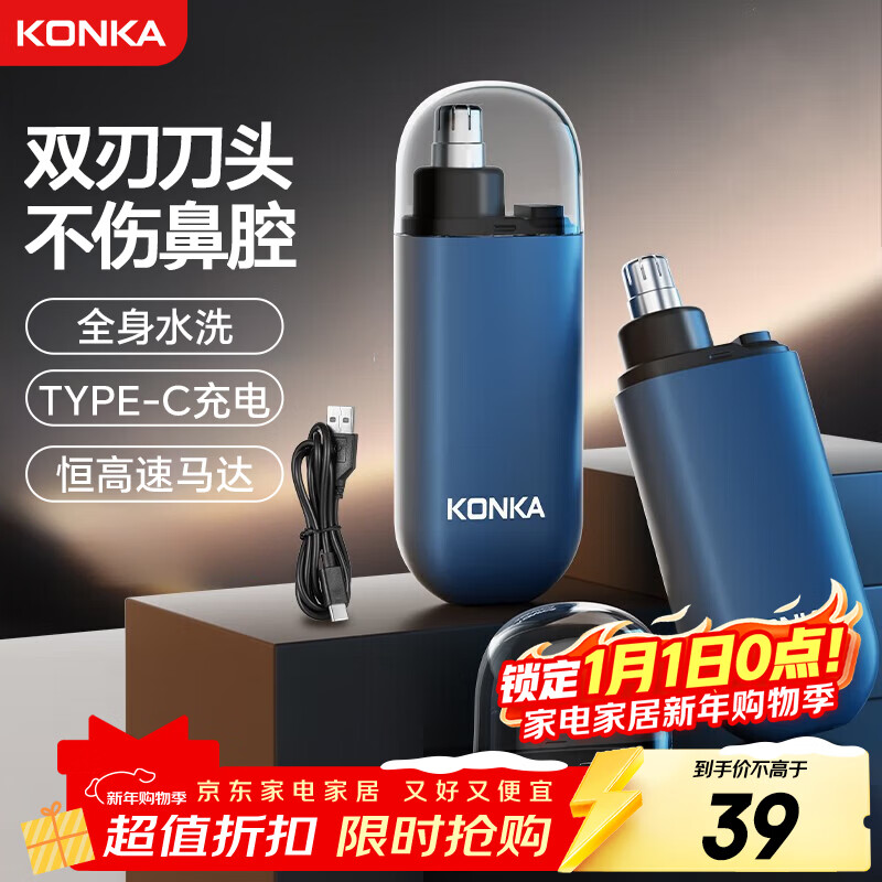 康佳(KONKA)鼻毛修剪器男士专用多用充电便携款鼻毛剪鼻孔清洁器多功能修剃鼻毛神器生日礼物实用送男生