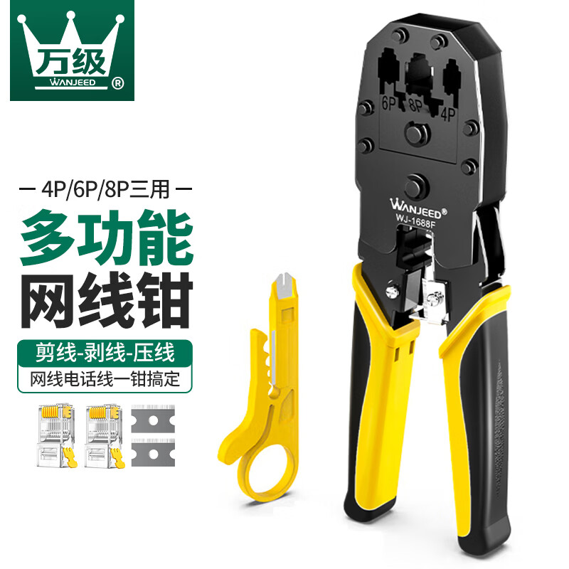 万级网线钳 网络电话水晶头压线钳 工程级8P6P4P三用超五六类网线夹线钳剥线钳多功能省力工具WJ-1688F