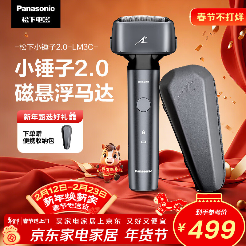松下(Panasonic)小锤子2.0电动剃须刀往复式男士刮胡刀进口磁悬浮马达三刀头Type-c生日礼物新年礼物送男生JLM3C黑