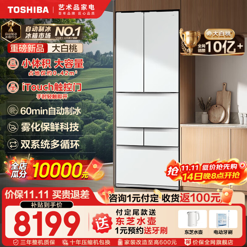 东芝(TOSHIBA)479大白桃日式双系统循环一级能效变频超薄可嵌入式自动制冰除菌风冷无霜国家补贴家用电冰箱 GR-RM479WE-PG1B3富士白