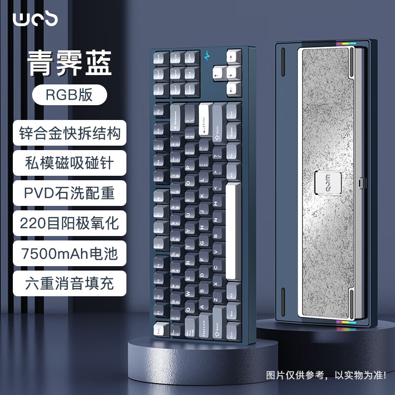 WOB crush80reboot客制化机械键盘铝坨坨CNC三模蓝牙有线2.4g无线电竞游戏办公 青霁蓝RGB【阳极-雪顶可可轴】双色键帽