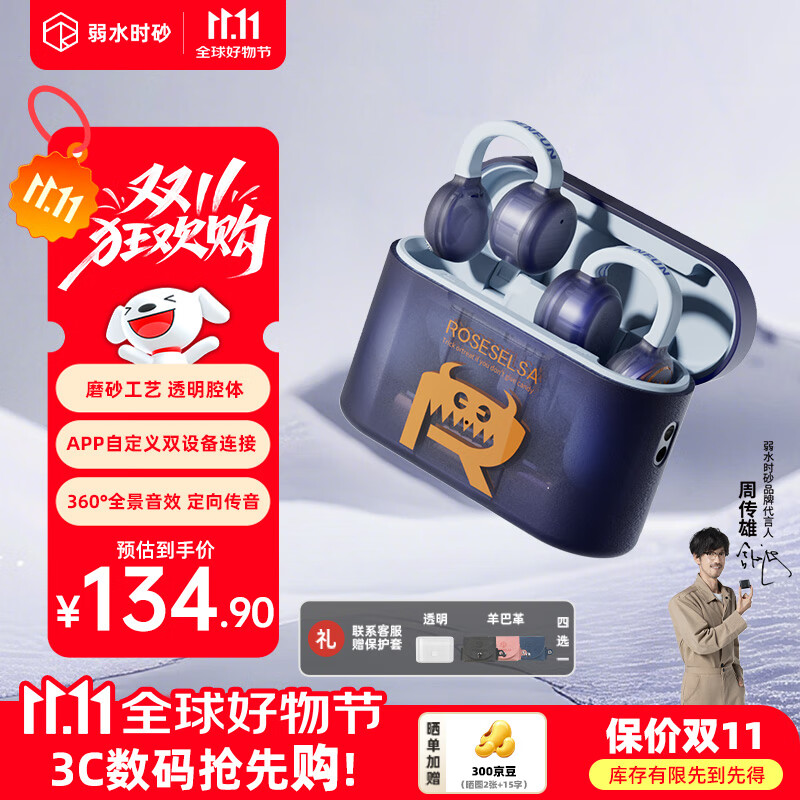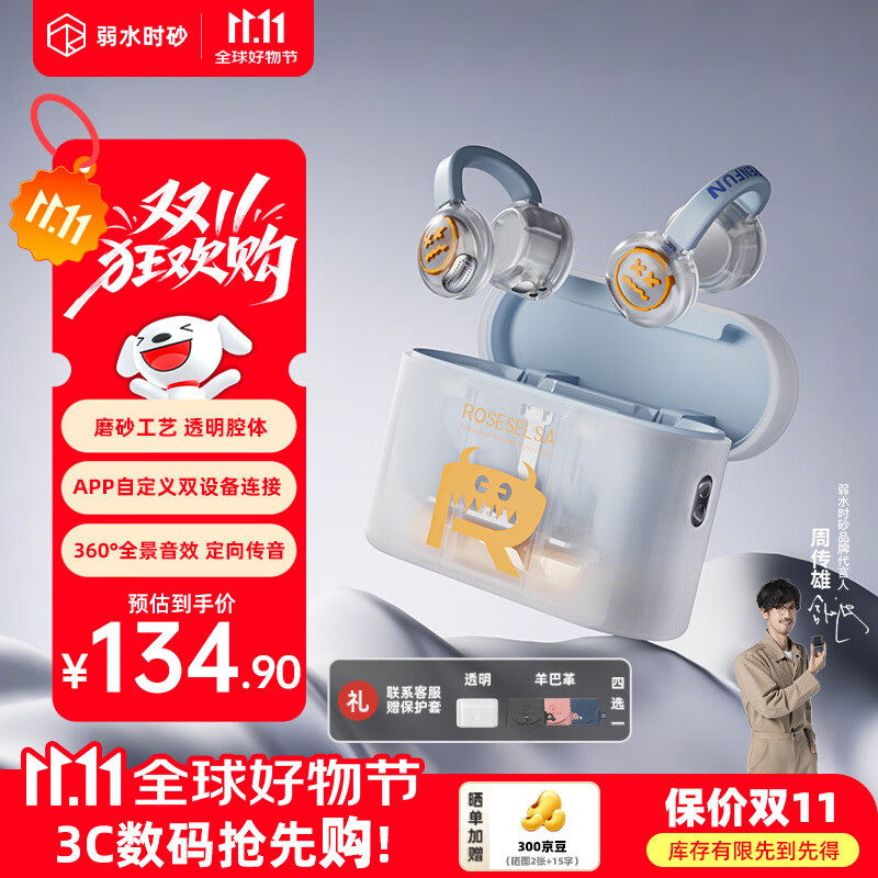 弱水时砂【2025新款】OpenFun蓝牙耳机耳夹式真无线挂耳运动跑步开放式通话降噪骨传导概念适用苹果安卓 白灵兽【八仓现货】