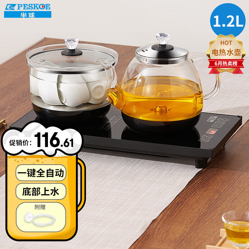 半球(PESKOE)全自动上水电热水壶 烧水煮茶一体机 茶桌茶台一体式泡茶家庭办公用茶几嵌入式煮茶壶 1.2L 底部上水【上水壶+消毒锅】