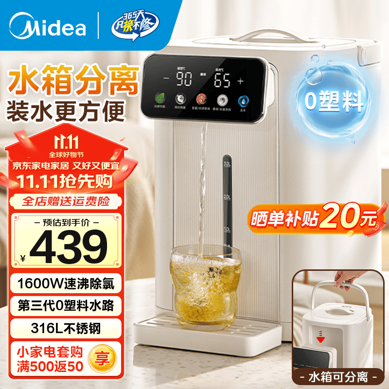 美的(Midea)小魔方电热水瓶可拆5L恒温一体全自动除氯电热水壶316l一体无缝内胆保温水壶非即热式饮水机熟水机 5L 【小魔方SE】壶身分离