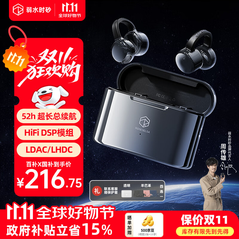 弱水时砂【八仓现货】openfree蓝牙耳机耳夹式真无线HIFi音质挂耳运动跑步通话降噪骨传导概念开放式 夜幕黑/52小时超长总续航 【LDAC/LHDC/LC3】三协议