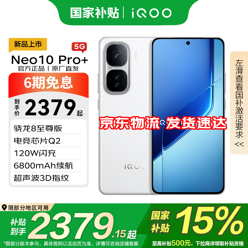 vivoiQOO Neo10pro+ 国家补贴 骁龙8至尊版 自研电竞芯片Q2 超声波3D指纹 新品5G 学生游戏电竞手机 驰光白 12GB+256GB 活动专享版
