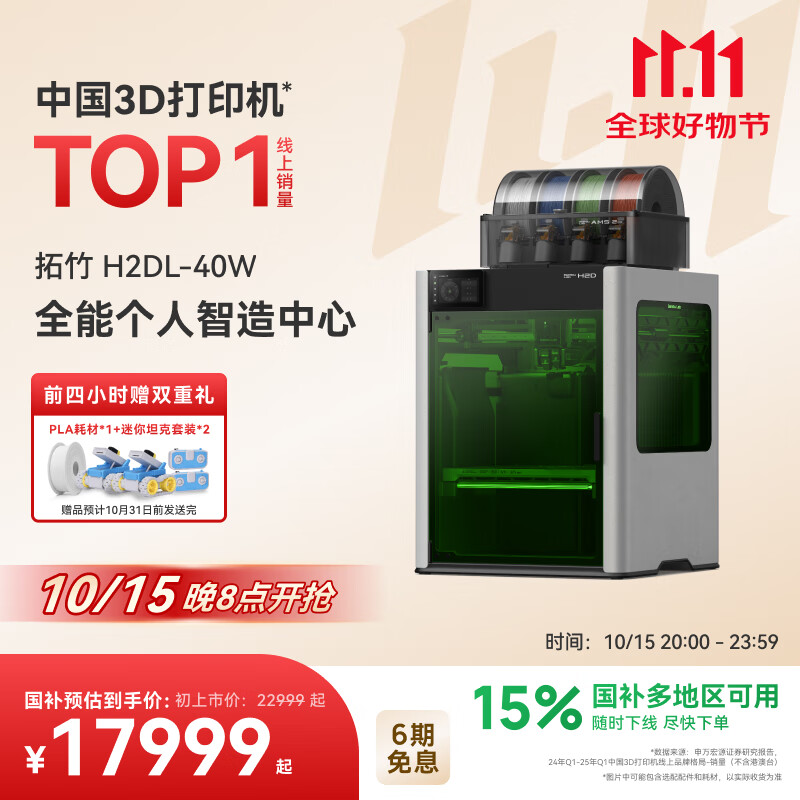 拓竹H2D 3D打印机器激光雕刻模切画笔多功能四合一高精度大尺寸高速智能多色家用旗舰新品【大陆版】 H2D激光全能套装-40W版