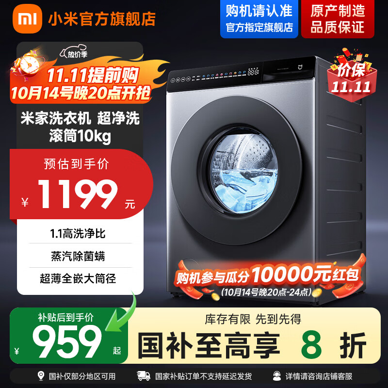 米家【国家补贴至高20%】小米10公斤超净洗直驱变频全自动滚筒洗衣机 超大筒径超薄机身 1.1高洗净比