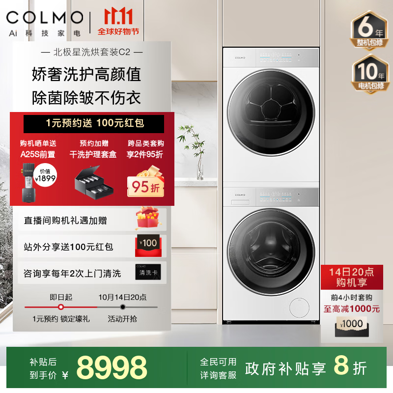 COLMO北极星洗烘套装C2 10/10KG家用C2Pro+ 12/12KG大容量纯平全嵌滚筒洗衣机10/12KG热泵烘干机 【10洗+10烘】AI轻干洗柔护
