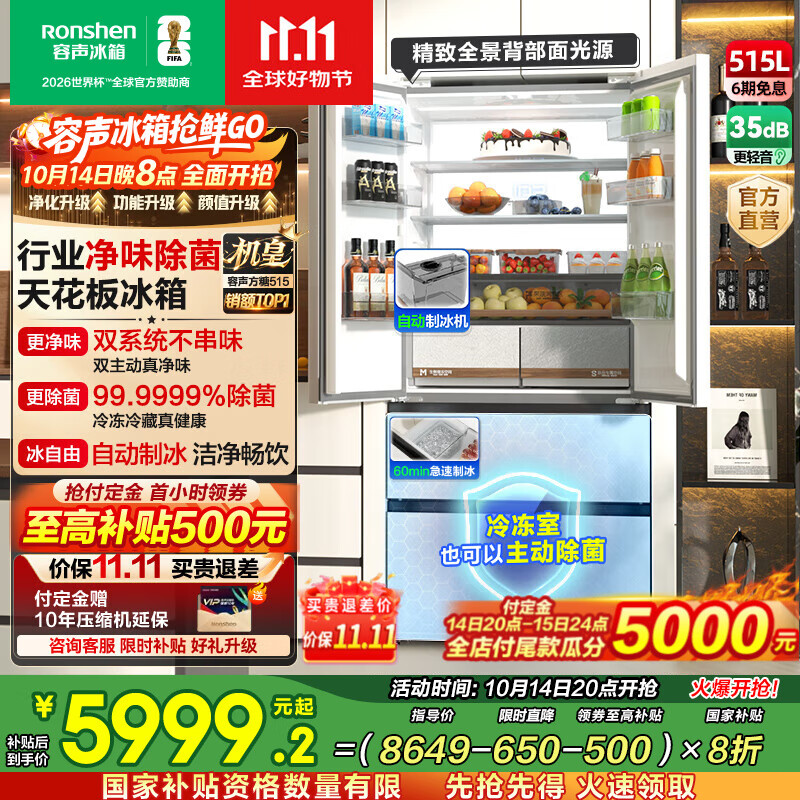 容声方糖515机皇双系统法式多门四开门超薄零嵌入式电冰箱家用自动制冰一级BCD-515P60FZNAD白国家补贴 BCD-515P60FZNAD白国家补贴