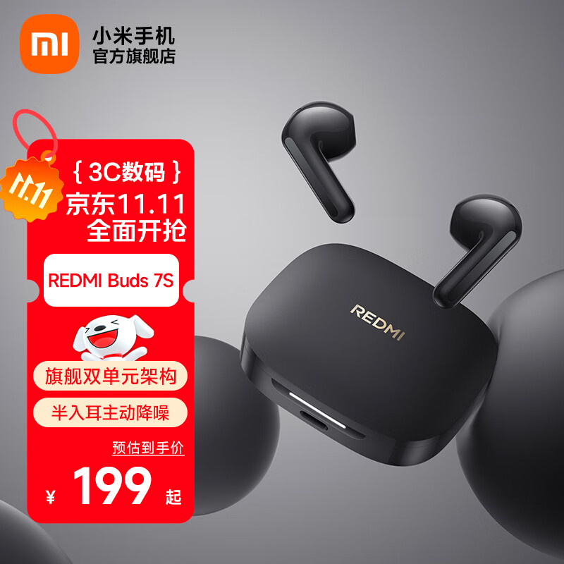 小米Redmi Buds 7S 蓝牙耳机 半入耳主动降噪 适用于安卓苹果手机 子夜黑