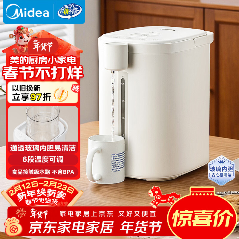 美的(Midea)电热水瓶烧水壶保温一体食品级玻璃内胆全自动断电智能恒温保温冲奶泡茶神器家用5L大容量50E-10G