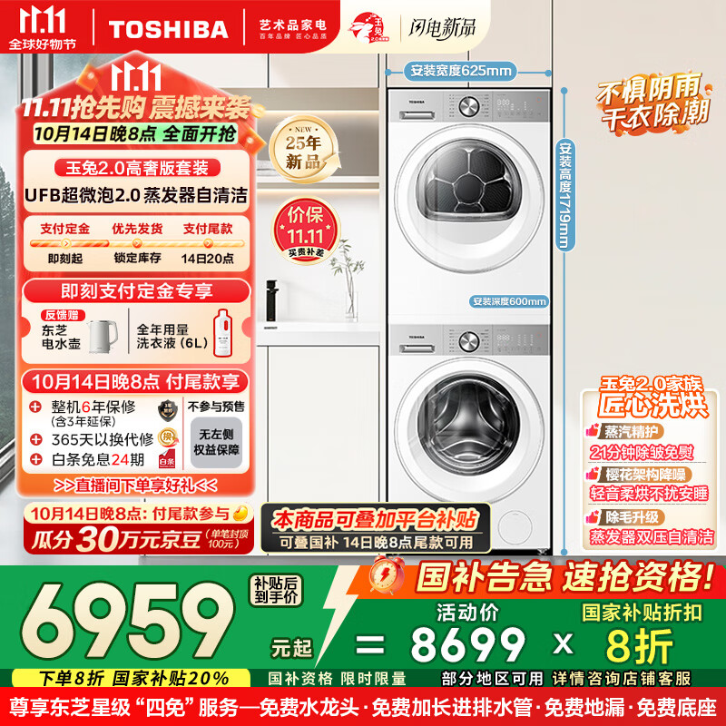东芝(TOSHIBA)玉兔2.0高奢版洗烘套装【DG-10T183BW+T183BW】10KG滚筒全自动洗衣机+变频热泵烘干机 国家补贴20%