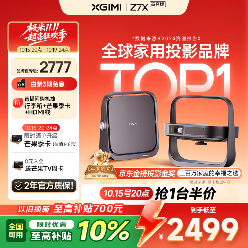 极米Z7X 高亮版 投影仪家用 轻薄投影机 (经典换代体验升级 哈曼原装音响 )国家补贴