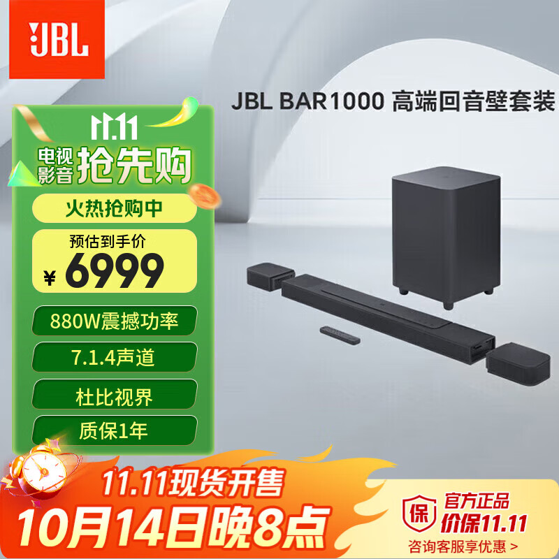 JBL BAR1000回音壁电视音响 7.1.4杜比全景声家庭影院Soundbar 蓝牙低音炮高端家用智能音箱套装