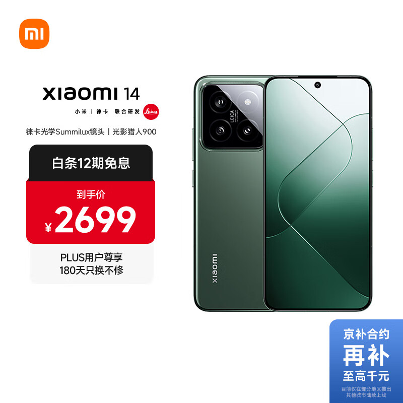 小米14 徕卡光学镜头 光影猎人900 国家补贴 第三代骁龙8 12+256岩石青 5G手机国补