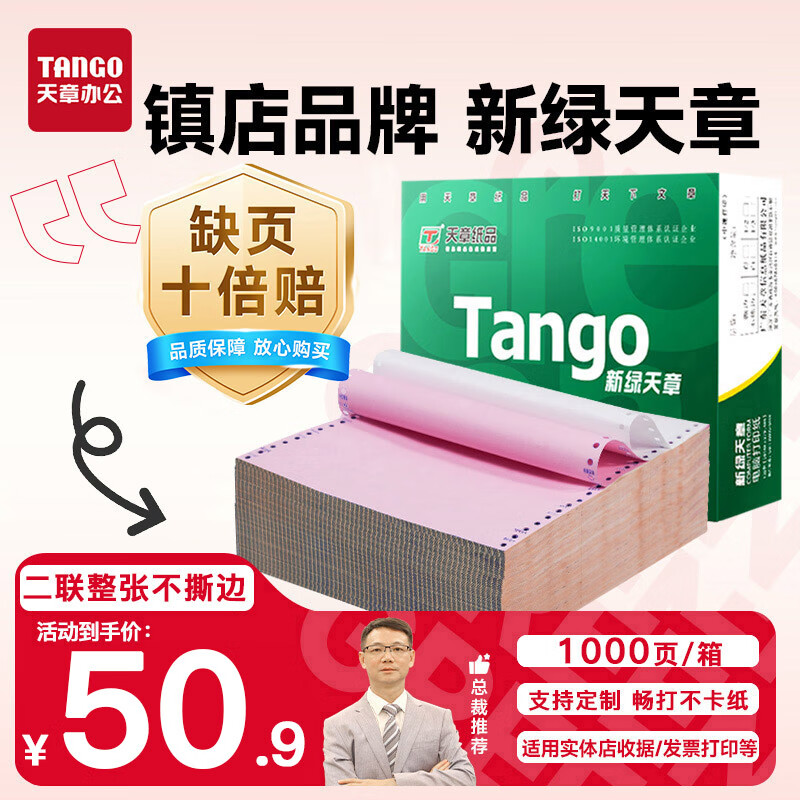 天章 (TANGO)【缺页十倍赔】新绿天章二联整张不撕边 针式电脑打印纸 出入库送货单 (241-2 白红 1000页)可定制