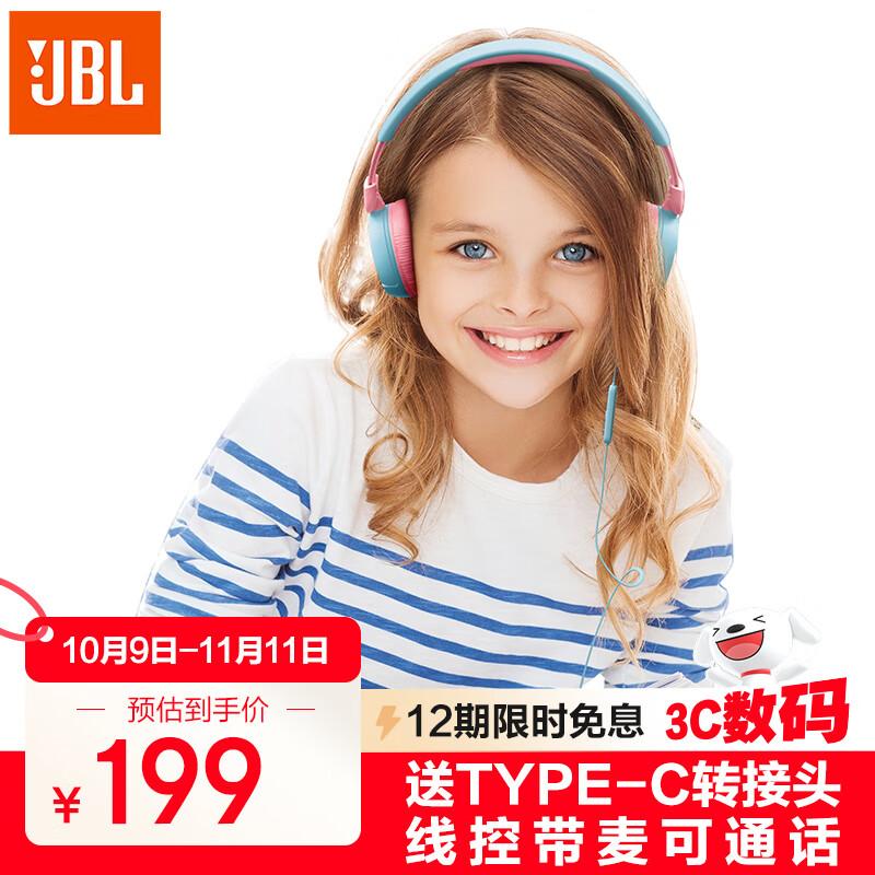 JBL JR310 头戴式儿童益智耳机 低分贝线控带麦克风沉浸式学生英语学习网课听音乐耳机 蓝色