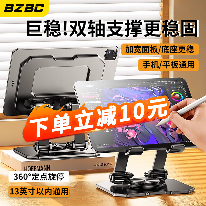 BZBC平板支架ipad桌面手机支架360°多功能旋转折叠款懒人支撑架子吃鸡网课绘画金属直播视频手机通用